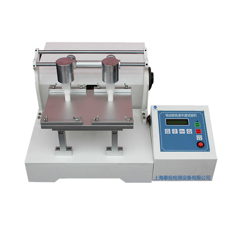 摩擦染色坚牢度试验机用于植绒毛加工布料植毛强度试验机、人造革的磨擦脱色试验、纸板,印刷,油墨,涂料等的耐磨擦试验等。本机是日本工业标准中摩擦色牢度试验中规定的标准的设备。